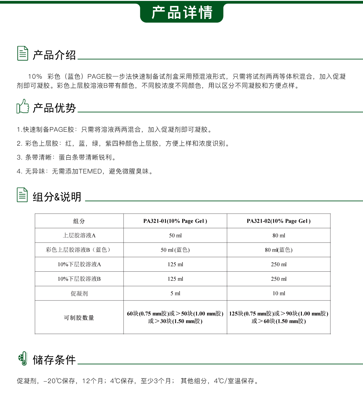 10%彩色(蓝色)PAGE胶一步法快速制备试剂盒