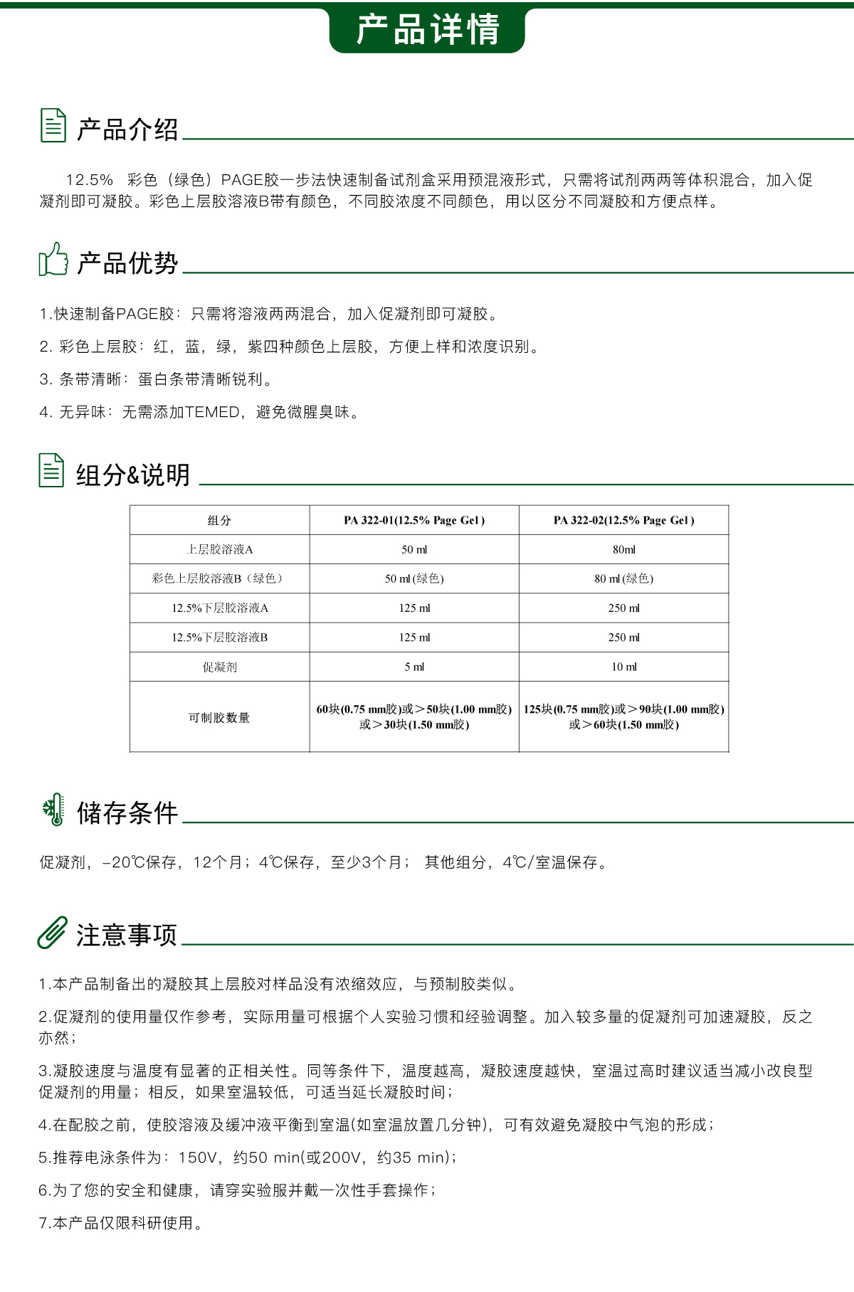 12.5% 彩色(绿色)PAGE胶一步法快速制备试剂盒