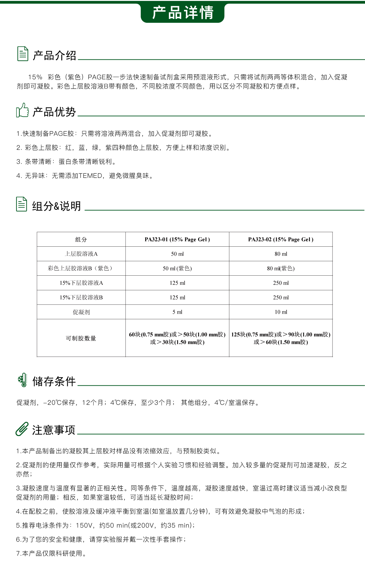 15%彩色(紫色)PAGE胶一步法快速制备试剂盒