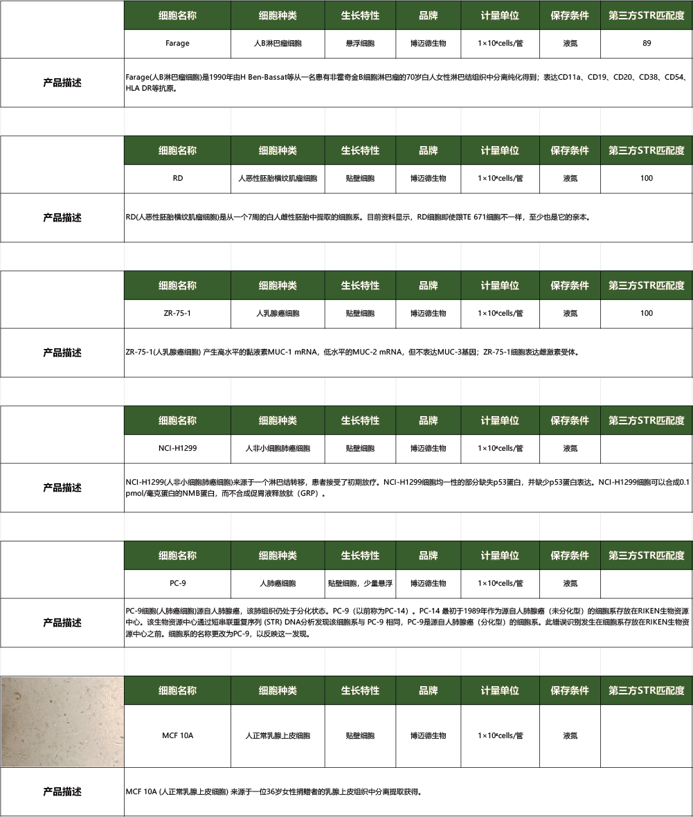 | MCF10A | 1×10⁶cells/管 | ¥1060 | |