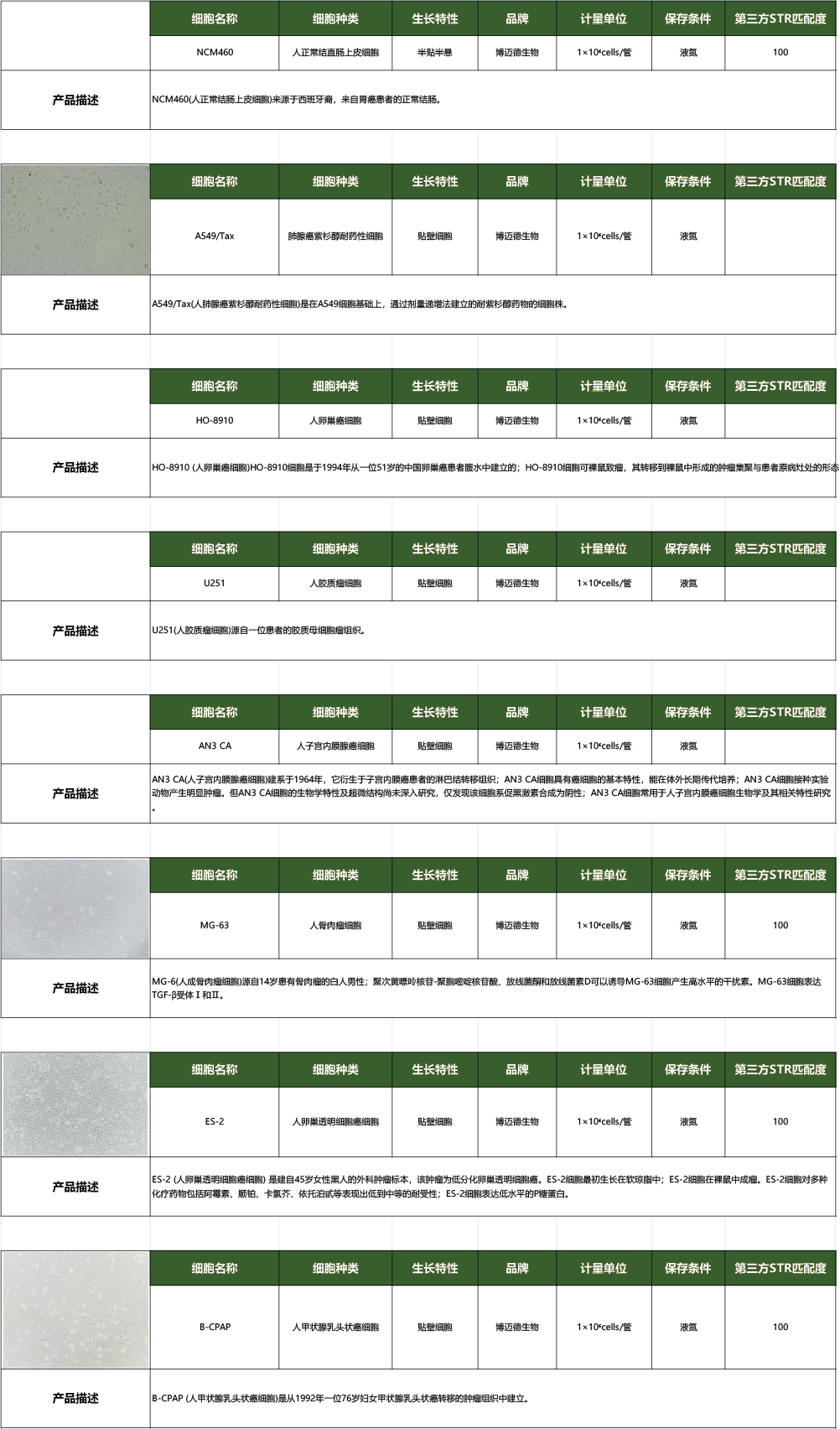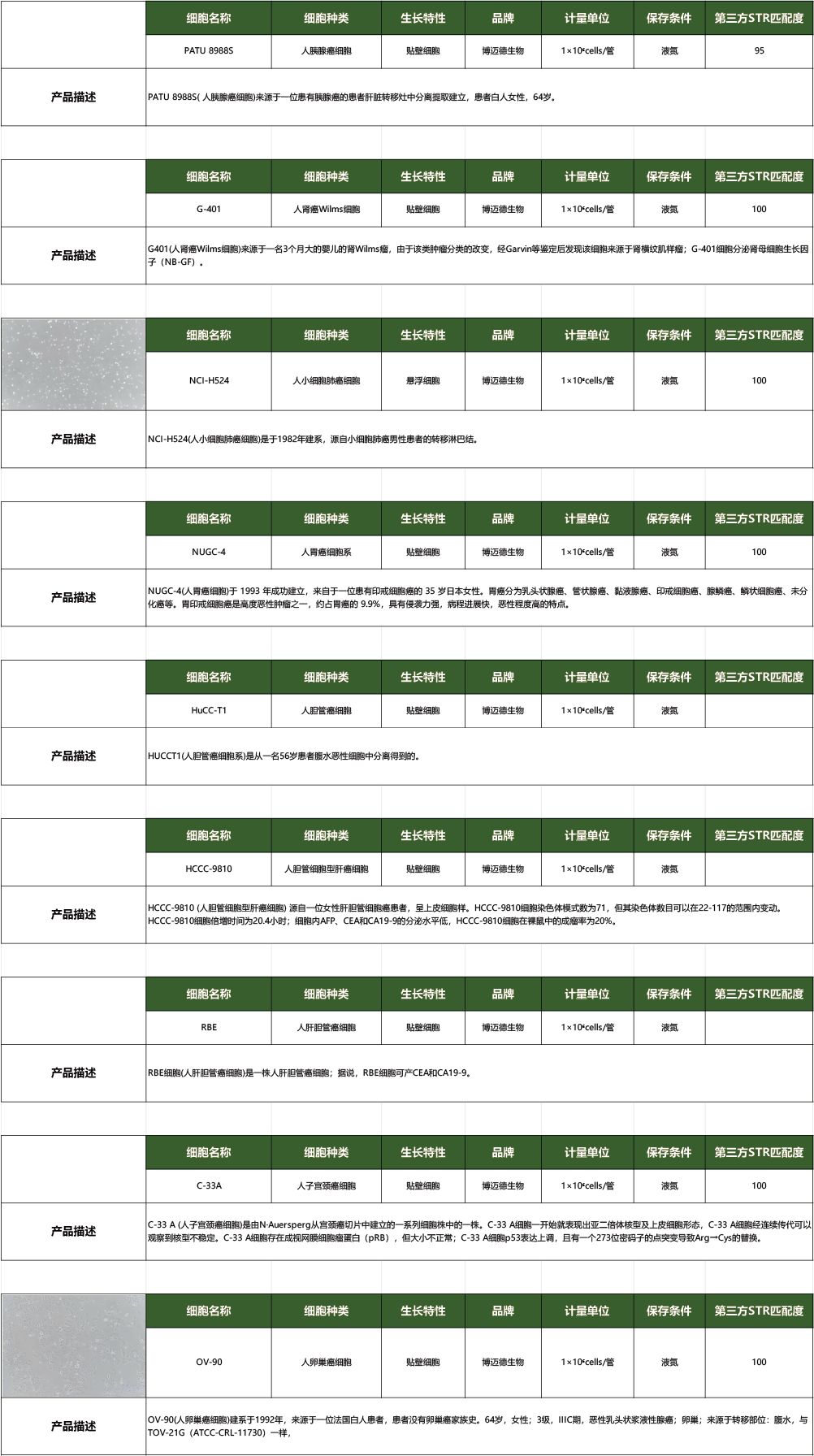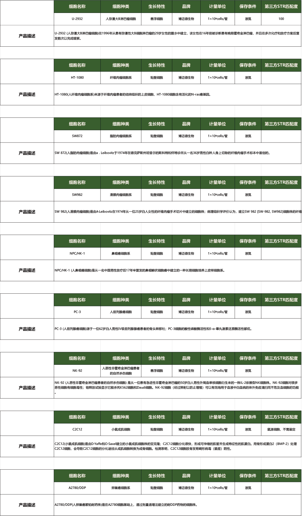细胞株产品