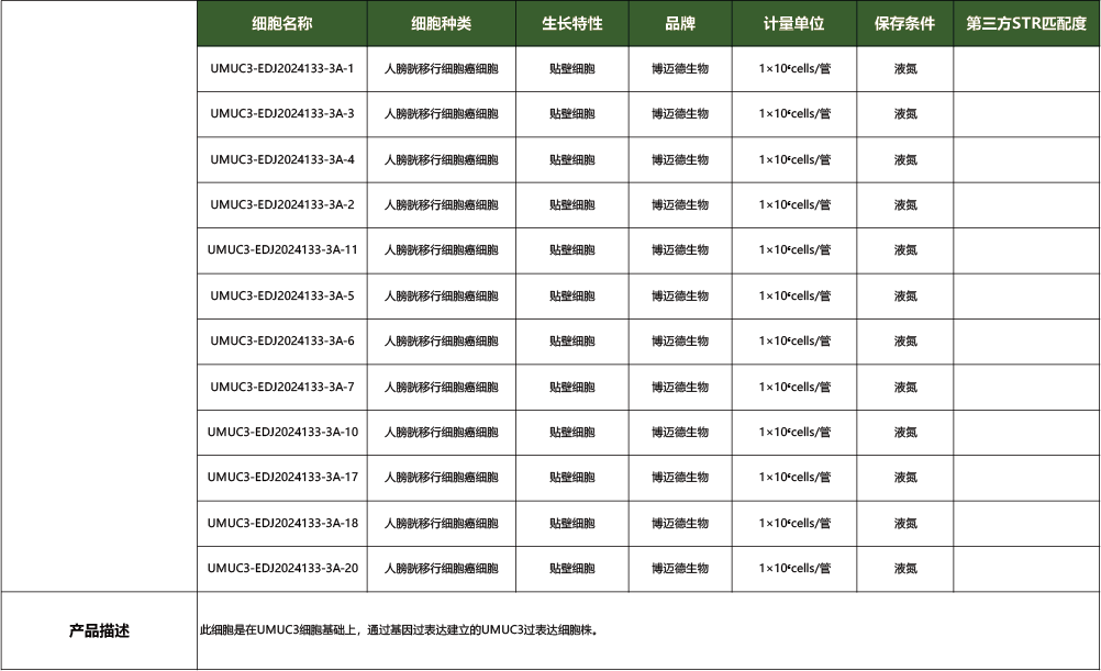 | UMUC3-EDJ2024133-3A-20 | 1×10⁶cells/管 | ¥680 |